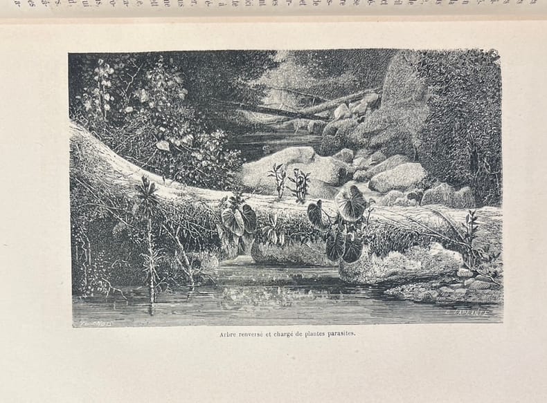 Illustré de 54 gravures sur bois et 5 cartes dont 3 en couleur et une dépliante. Édition originale française parue un an après l'anglaise. Le traducteur accompagna l'auteur en Amazonie.