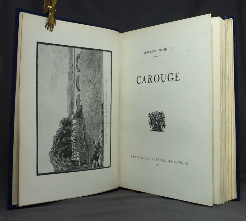 Illustré de 20 hors-texte en noir et de figures in-texte, parfois à pleine page. Oeuvres de E. Cottier, H. C. Forestier ou reproduction de documents anciens. Photographies de Boissonnas. Édition originale au tirage limité à 850 exemplaires numérotés, celui-ci numéro 786. Très bel exemplaire dans une élégante reliure aux couleurs de la commune de Carouge.